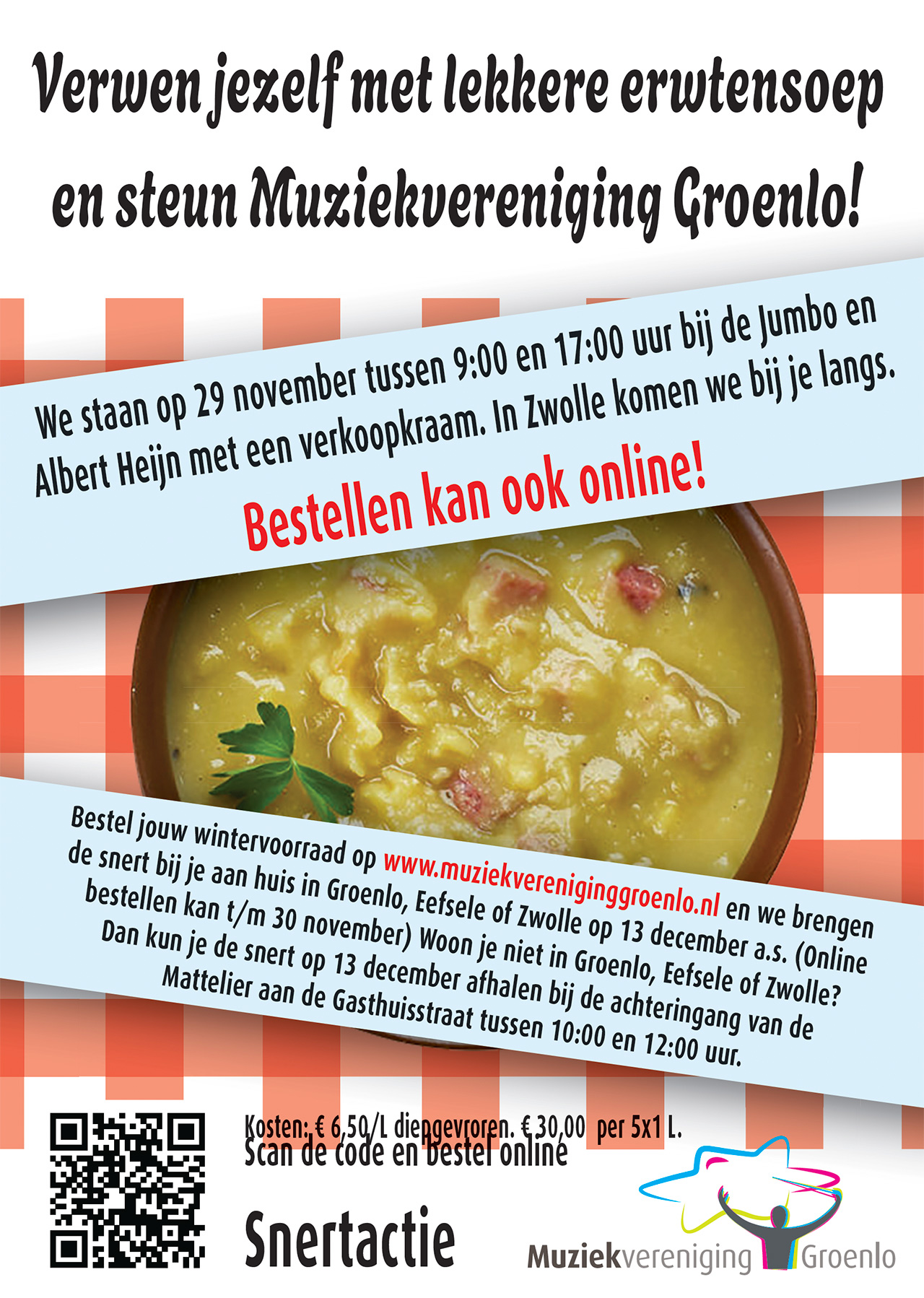 Bestel jouw wintervoorraad en we brengen de snert bij je aan huis in Groenlo, Eefsele of Zwolle op 13 december a.s.